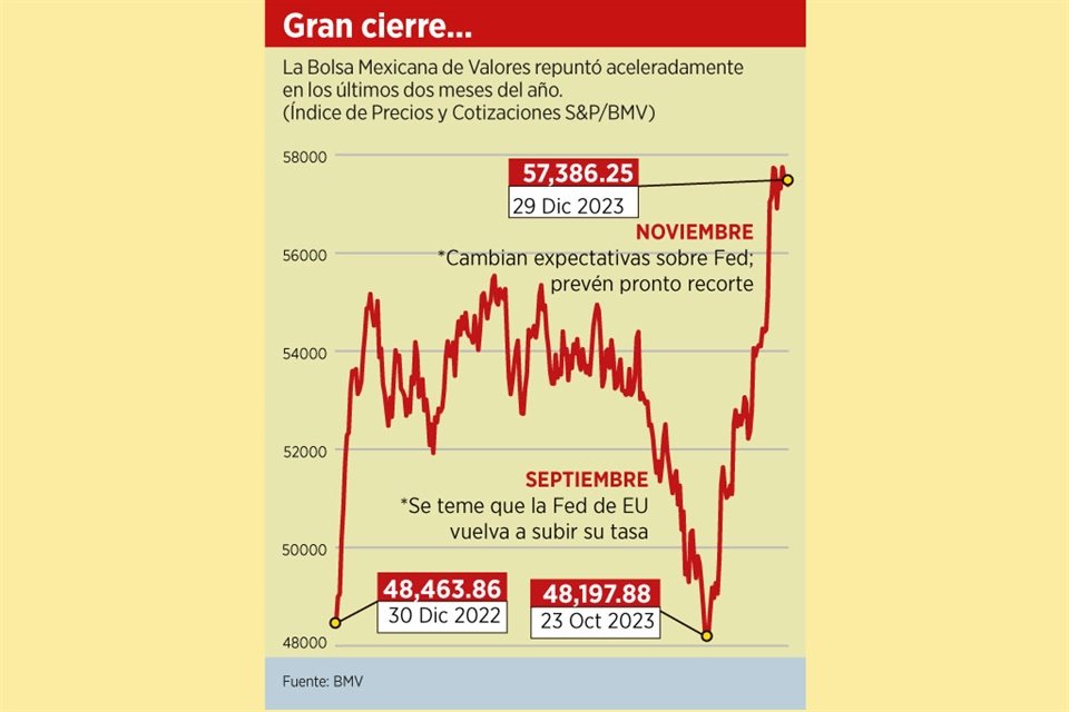 Durante el 2023 que ayer terminó para los mercados, las bolsas lograron ganancias de dos dígitos.