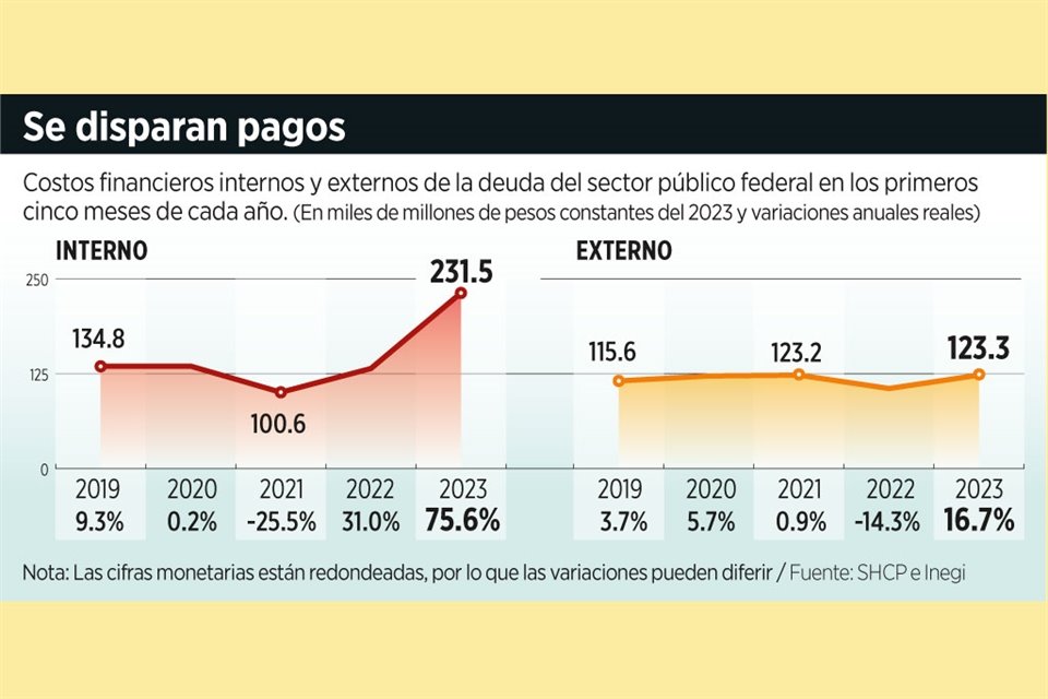 A pesar de una reducción en el saldo de la deuda pública externa y el fortalecimiento del peso, durante el último año aumentó su costo financiero, que incluye intereses, comisiones y otros gastos.
