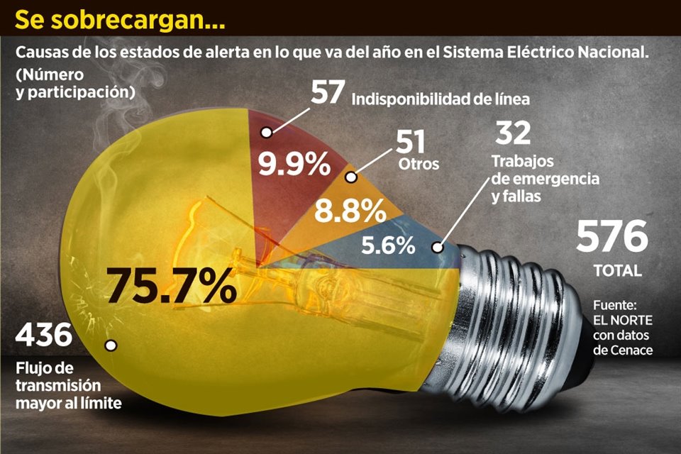 En lo que va del año, el Sistema Eléctrico Nacional (SEN) ha registrado un 23.3 por ciento más alertas operativas, reflejando la falta de inversión en infraestructura de transmisión y aumentando las probabilidades de apagones, advirtieron expertos.