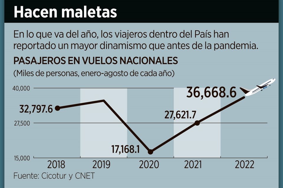 Las búsquedas de vuelos, paquetes de viaje y hospedaje en el Buen Fin crecerán 100 por ciento respecto a la edición de 2021, por un mayor dinamismo de los turistas tras la etapa más crítica de la pandemia.
