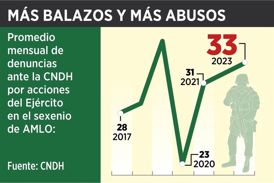 Las quejas contra el Ejército por abusos de sus militares aumentaron de 2020 a 2023 en un 43 por ciento, de acuerdo con cifras de la Secretaría de la Defensa Nacional (Sedena).