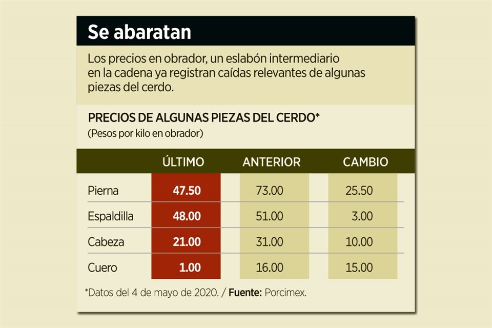 Los porcicultores mexicanos enfrentan caída en el consumo y en los precios a raíz del paro de diversas actividades por la contingencia sanitaria, reveló la Confederación de Porcicultores Mexicanos.