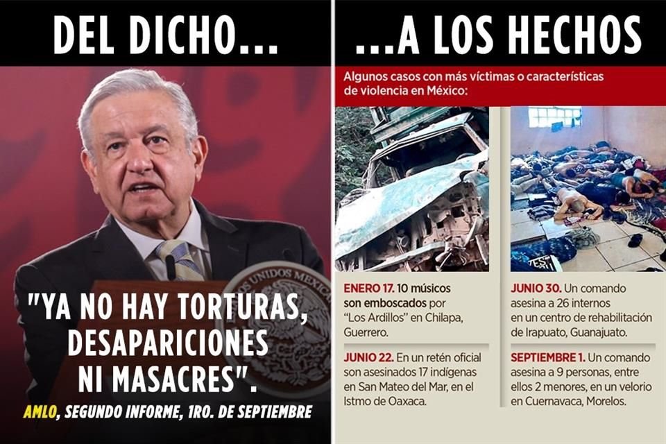 Pese al discurso oficial, las masacres en México no han cesado. En lo que va del año se han registrado al menos 45 casos en donde, en un mismo hecho, han asesinado a sangre fría a cinco o más personas en 20 estados.