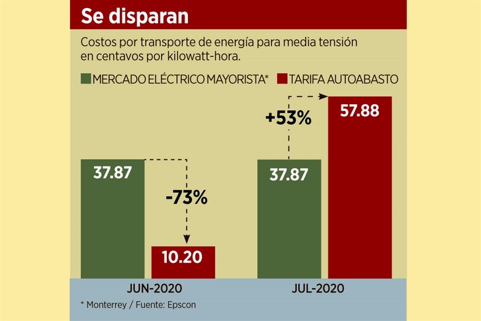 De librar litigios en contra y finalmente aplicarse, las tarifas para renovables y cogeneración en la modalidad de autoabasto, o "porteo estampilla", pasarían de ser 73 por ciento inferiores, en junio, a ser 53 por ciento superiores en julio, que las que pagan sus contrapartes en el Mercado Eléctrico Mayorista (MEM), de acuerdo con un análisis de la consultora Epscon.