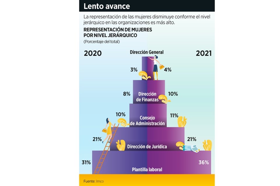 La participación de las mujeres en los consejos de administración de las empresas que cotizan en Bolsa será igual a la de los hombres hasta el año 2057 si no se impulsan cambios, señala un estudio del Imco y el IPADE.