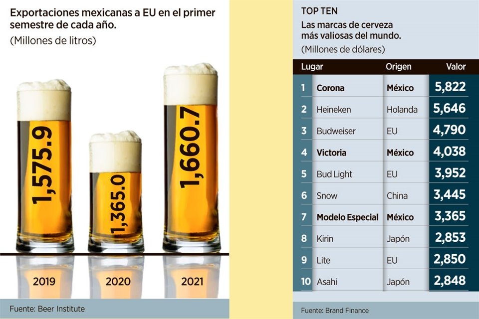 La cerveza mexicana ha vuelto a romper récord de ventas hacia Estados Unidos, consolidando su liderazgo como el principal país exportador y contando con la marca más valiosa de todas las cervezas producidas en el mundo.