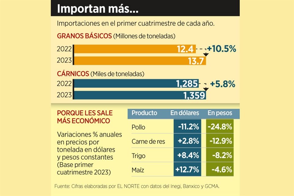 Debido a la apreciación del peso y a menores costos en dólares, importadores de granos básicos y cárnicos arreciaron sus compras en el primer cuatrimestre del año.