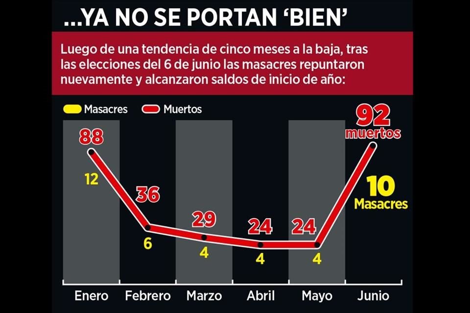 Tras las elecciones del 6 de junio, las masacres o multihomicidios repuntaron en el País.