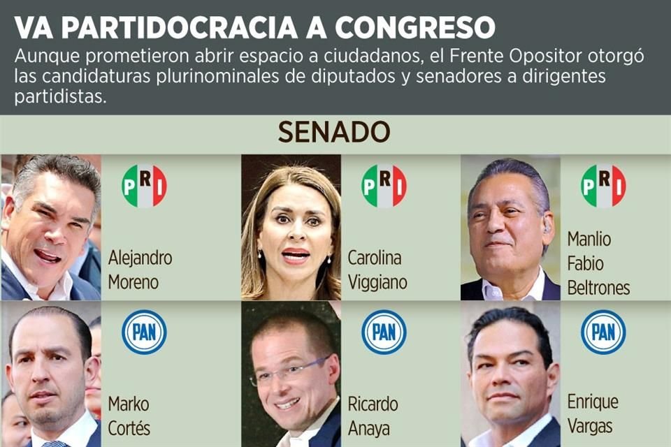 Aunque prometieron abrir espacio a ciudadanos, el Frente Opositor otorgó las candidaturas plurinominales de diputados y senadores a dirigentes partidistas.