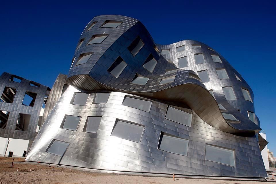 Las formas caprichosas de su arquitectura quedan a la vista en el Centro Lou Ruvo para la Salud Cerebral, diseñado para Clínica Cleveland en Las Vegas. Crédito: Isaac Brekken / AP Archivo