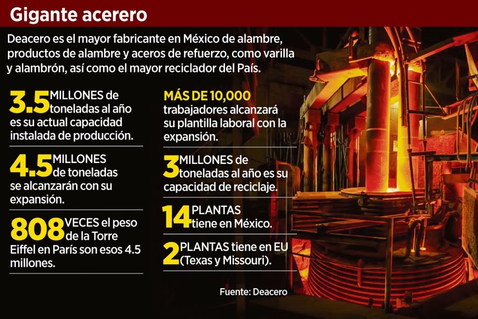 Raúl Gutiérrez, presidente del Consejo de Administración de Deacero, detalló que la inversión contempla la instalación de tres nuevas plantas para producción de derivados de acero: una en Coahuila, donde ya tienen presencia, otra en Ciudad Juárez y una más en Baja California.