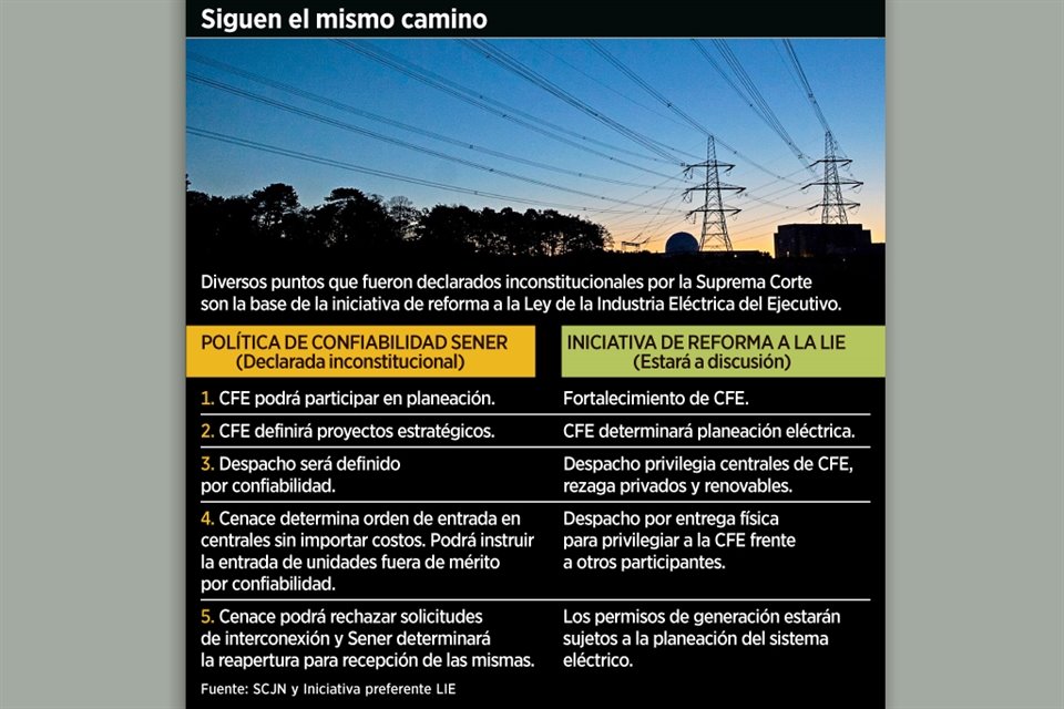 La reforma a la Ley de la Industria Eléctrica (LIE) propuesta por el Ejecutivo tiene por lo menos ocho aspectos que ya fueron declarados inconstitucionales por la Suprema Corte debido a que violan la competencia en el mercado, advierten especialistas.