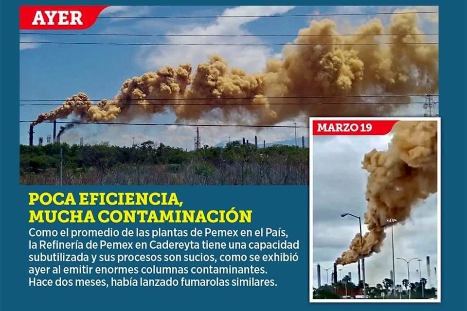 Dos meses después de que sus grandes columnas de humo alarmaron a la Ciudad y entre incumplidas promesas oficiales de acciones "contundentes" contra su contaminación, la Refinería de Pemex en Cadereyta volvió ayer a emitir enormes fumarolas sucias.