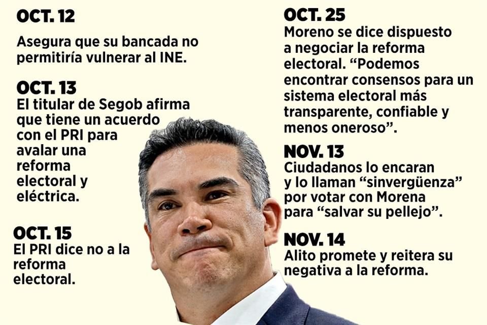 Tras la marcha en defensa del INE, Alito Moreno, líder del PRI, prometió que su partido votará en contra de la reforma electoral. Crédito: Grupo REFORMA.